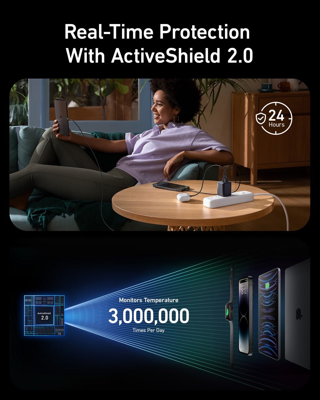 | Charging Excellence with GaNPrime™ | Powered by Anker's most advanced GaN technology and features ActiveShield™ 2.0 for intelligent temperature monitoring to ensure a safer charging experience. |