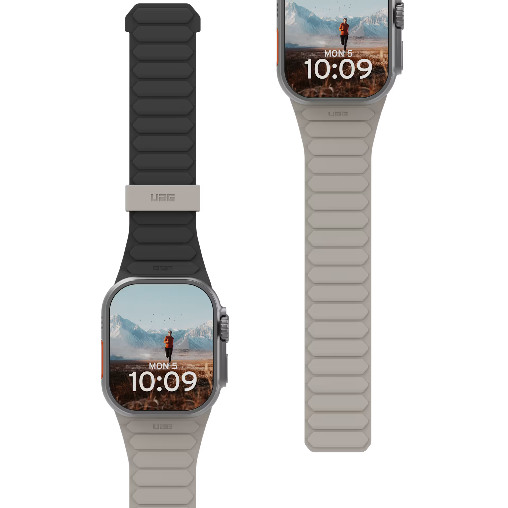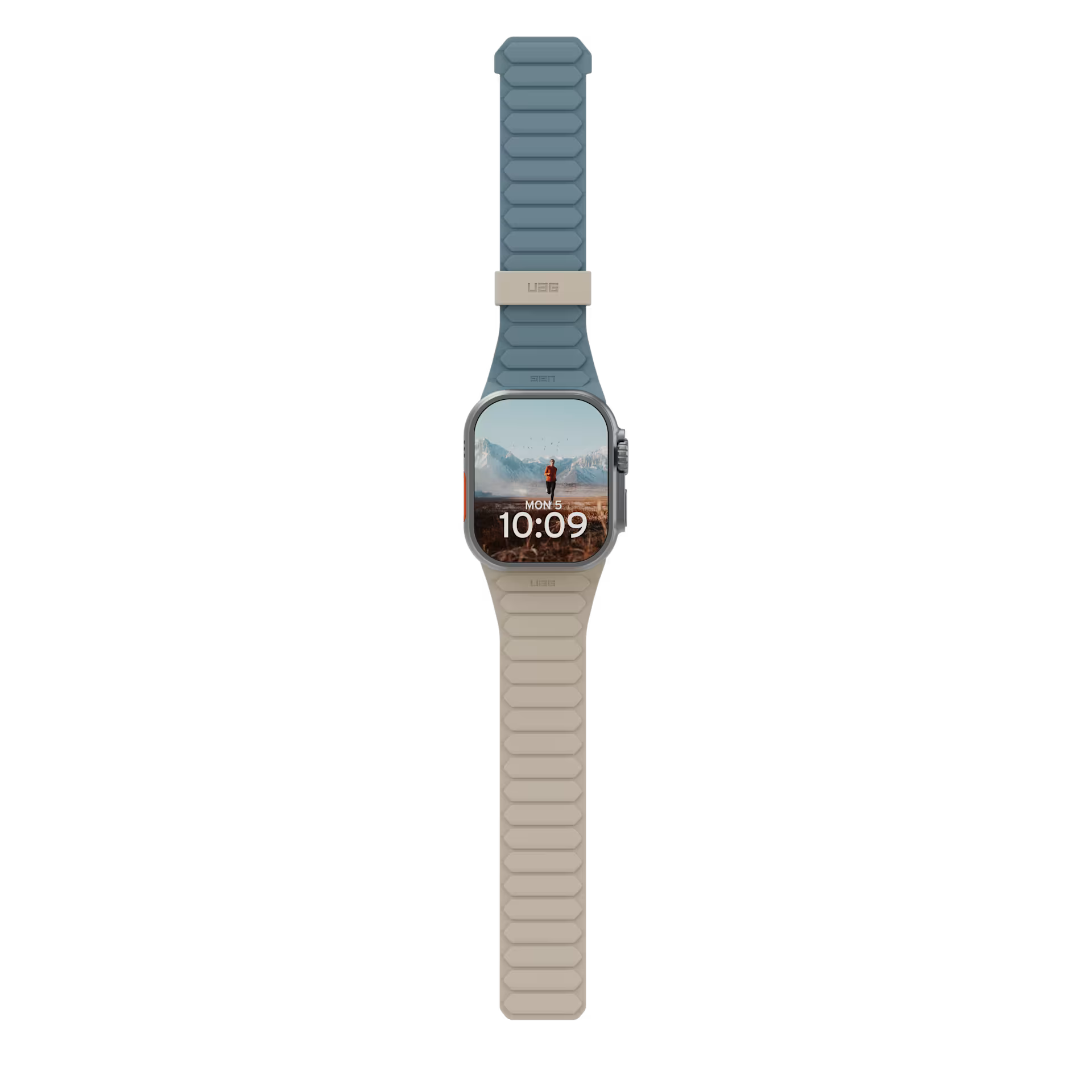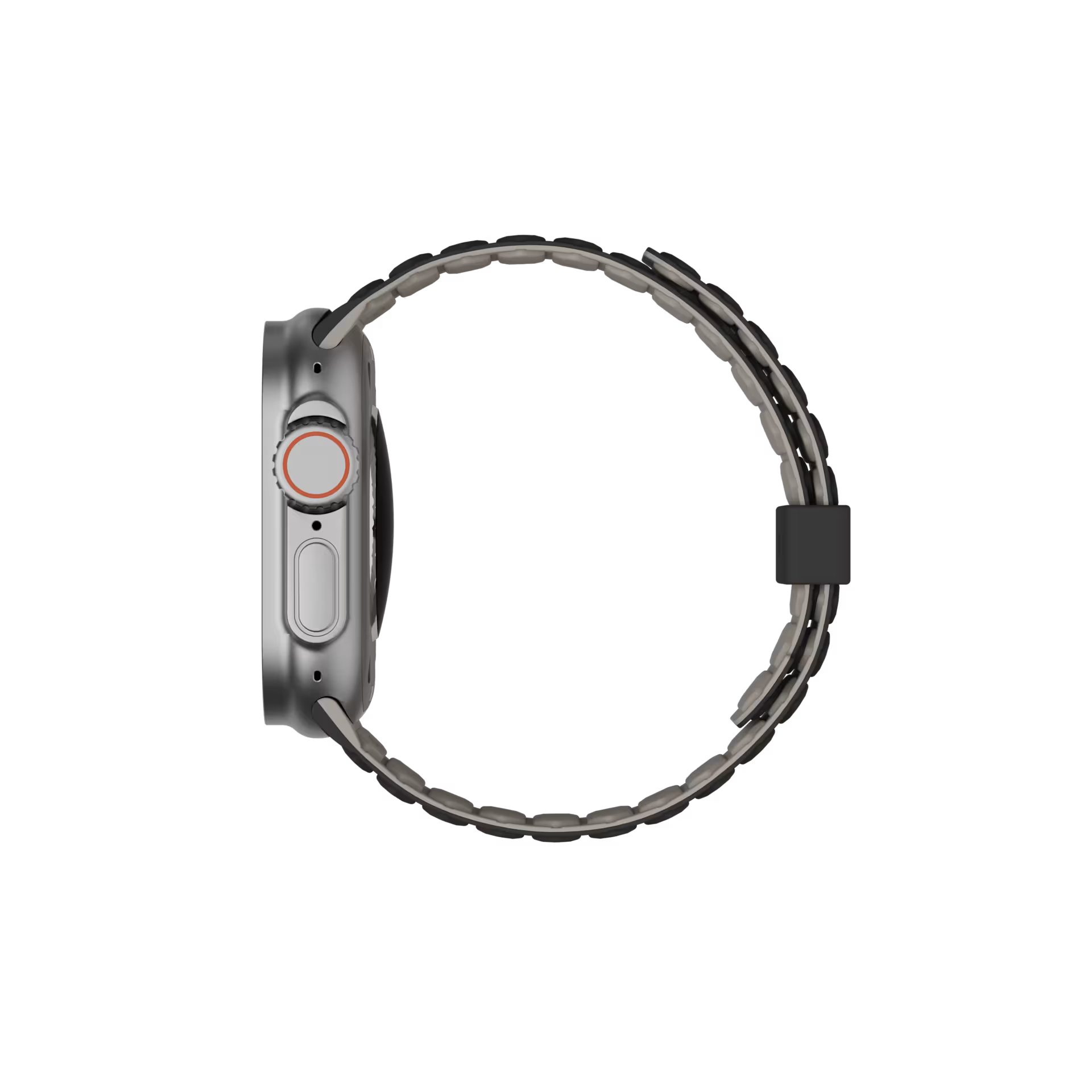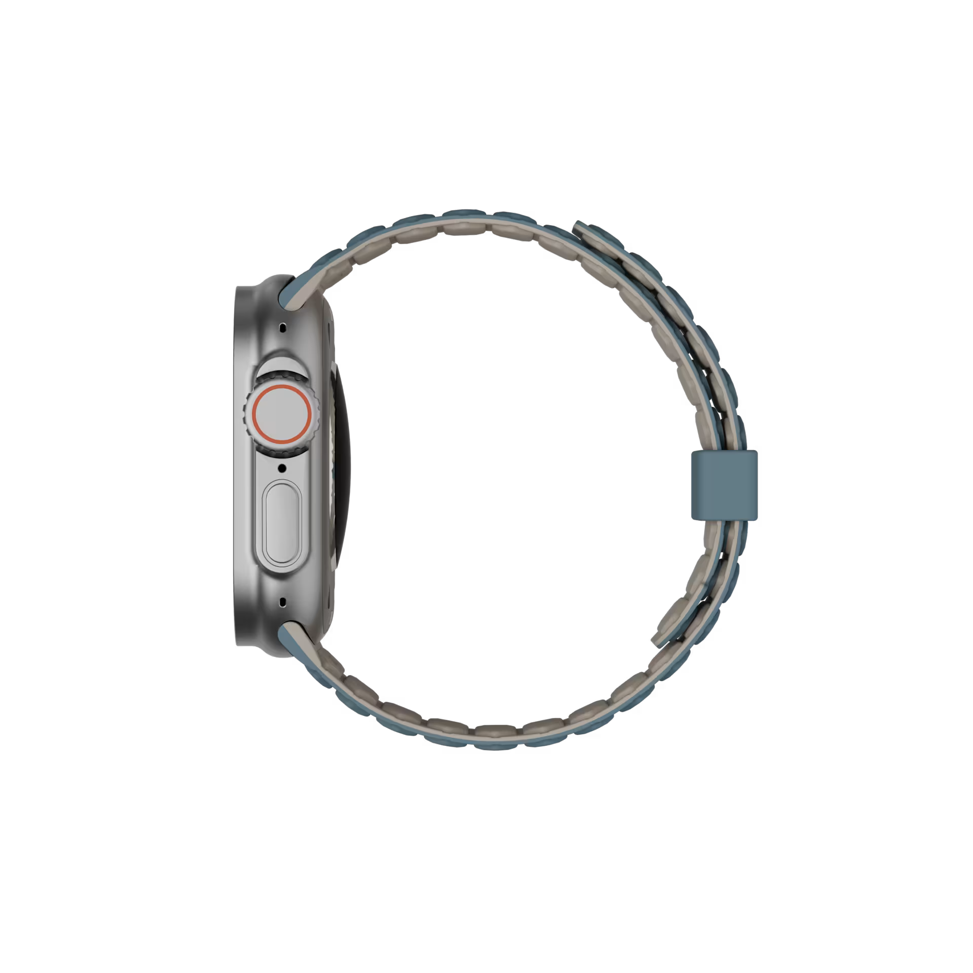 Upgrade your smartwatch experience with the Pathfinder reversible magnetic watch strap. Equipped with powerful magnets concealed within the band that allow you to simply and quickly wrap the band around your wrist for a precise fit. The end stop and loop provide reliable security for your smartwatch. The combination of our soft-touch silicone and magnetic enclosure provides exceptional all-day comfort and avoids the pressure points of traditional buckles. Complement any outfit with our stylish and reversible two-colored design.