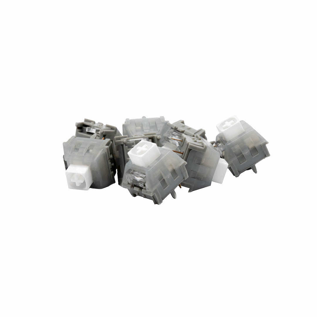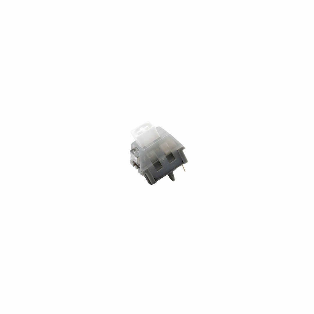 The Kailh White Owl Switch is a clicky switch with a strong tactile feedback. It features a white POM stem, translucent PC cover, and gray POM base. This switch takes inspiration from the temperament, power, and color of the white owl.